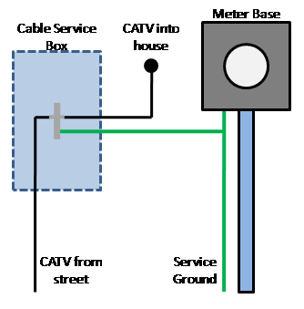 Note that this is how the National Electric Code intends for the service ground to work, so don't think that unplugging your grounding block's ground connection will help. Many CATV coax connected devices ground the shield of the coax, including the splitters commonly used in whole-house structured wiring boxes. Without a ground at the service entrance, it is likely that another CATV connected device inside your house will be the next best return path, bringing potentially damaging current and the possibility of fire inside your walls - this is a Bad Thingtm! This also holds true in the case of lightning and other electrical surges.